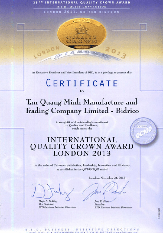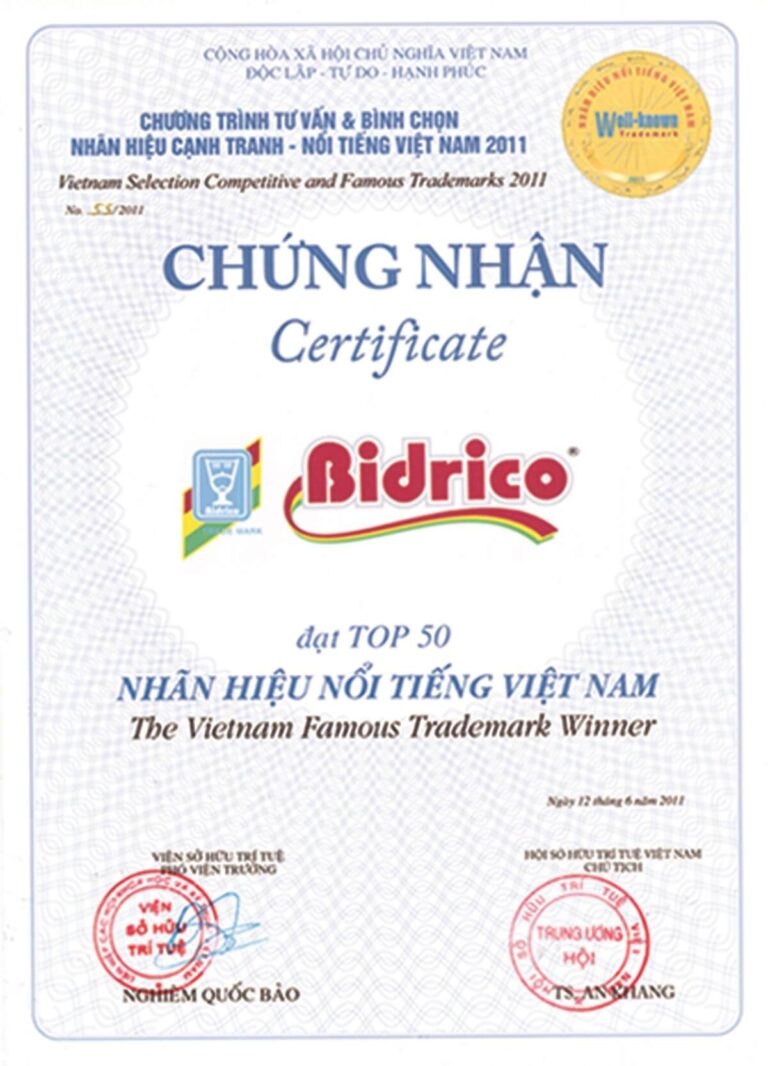 + Bidrico has been certified for high quality Vietnamese goods for many years in a row