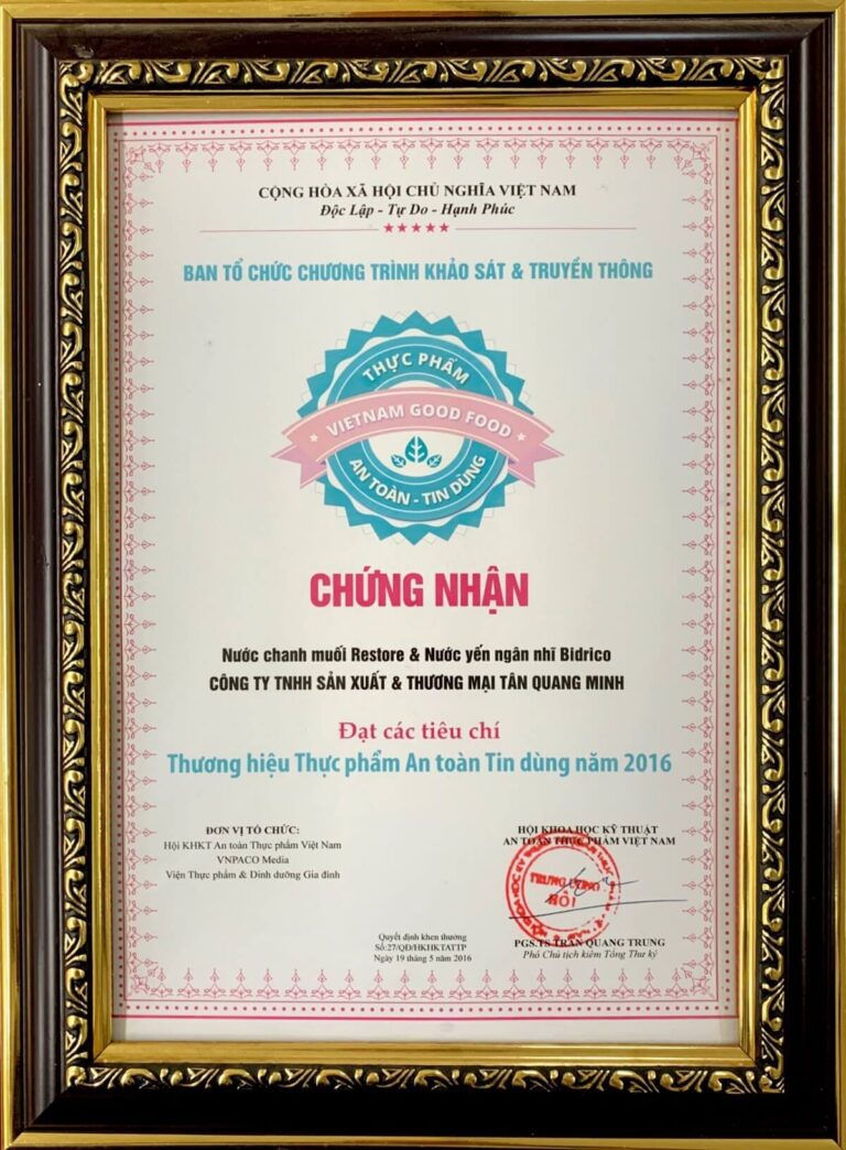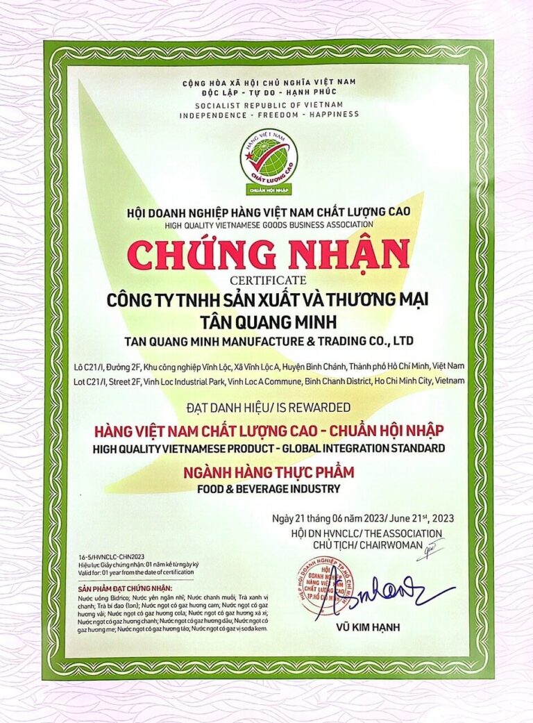 Since its establishment, Bidrico has continuously been awarded noble domestic and international awards and certificates: from the Government of the Socialist Republic of Vietnam, ministries, provinces/cities and associations. That is a testament to Bidrico’s efforts in the journey to bring non-alcoholic beverage products “For public health”.