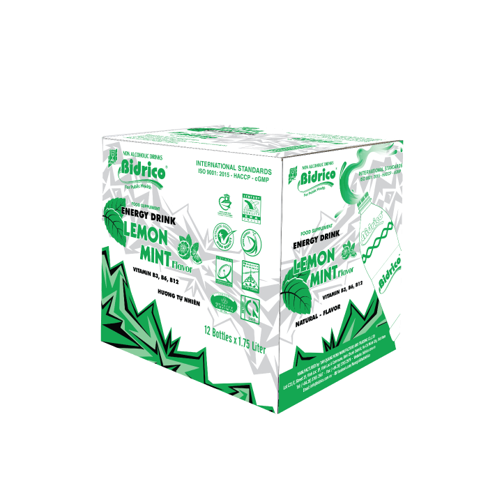 ContactBidrico energy drink lemon mint flavor 1.75l bottle with fresh lemon flavor mixed with cool mint creates a refreshing feeling from the first sip. Just one bottle of Bidrico energy drink, you will stay alert and focused thanks to the taurine content and active ingredients vitamins B3, B6, B12… This is the ideal product to start a new day and dispel fatigue when working hard.