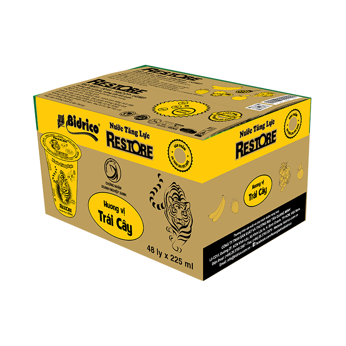 Liên hệNước tăng lực Restore (Trái cây) là sản phẩm bổ sung được sản xuất bởi công ty TNHH SX& TM Tân Quang Minh.