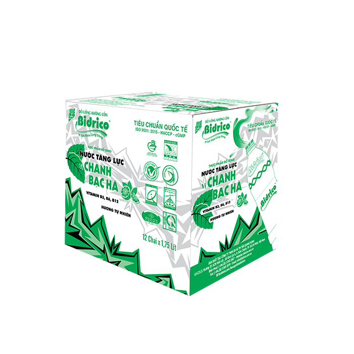 Liên hệNước tăng lực vị chanh bạc hà Bidrico chai 1.75l với hương vị chanh tươi mát hòa quyện cùng bạc hà the lạnh tạo cảm giác sảng khoái ngay từ ngụm đầu tiên. Chỉ cần một chai nước tăng lực Bidrico, bạn sẽ cảm nhận được sự tỉnh táo và tập trung nhờ vào hàm lượng taurine và các hoạt chất vitamin B3, B6, B12, taurine… Đây là sản phẩm lý tưởng để bắt đầu ngày mới và xua tan mệt mỏi khi làm việc căng thẳng.