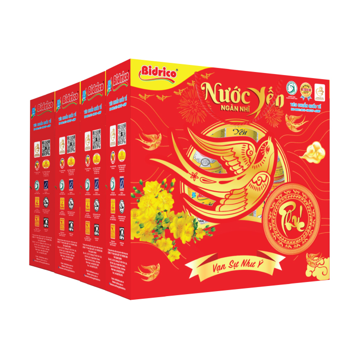 Liên hệNước yến ngân nhĩ hộp xuân Bidrico: Với tông màu đỏ ấm áp kết hợp sự tinh tế trên từng đường nét, tô điểm cho đàn chim yến bay lượn báo hiệu sự sum họp và gắn kết cho mùa xuân mới. Sản phẩm có nguồn gốc từ thiên nhiên giúp bồi bổ và tăng cường sức khoẻ. Là sản phẩm cao cấp của BIDRICO sản phẩm đạt tiêu chuẩn FDA – FCE – SID, xuất khẩu sang Hoa Kỳ Được sản xuất trên dây chuyền hiện đại của Châu Âu.