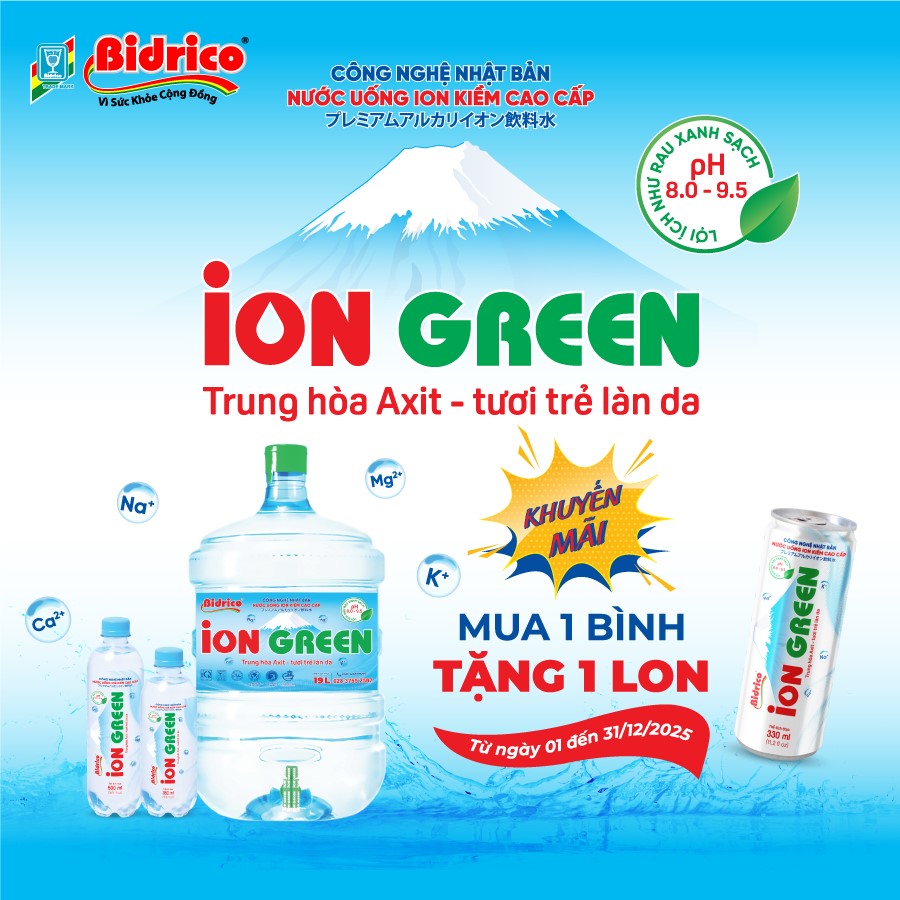 Với hơn 32 năm kinh nghiệm, Bidrico không ngừng phát triển các dòng sản phẩm nước uống chất lượng cao, phù hợp cho nhiều nhu cầu khác nhau, từ giải khát mỗi ngày đến hỗ trợ sức khỏe lâu dài. 💧 Nước Uống Ion Kiềm Ion Green Nước ion kiềm cao cấp Ion Green được...